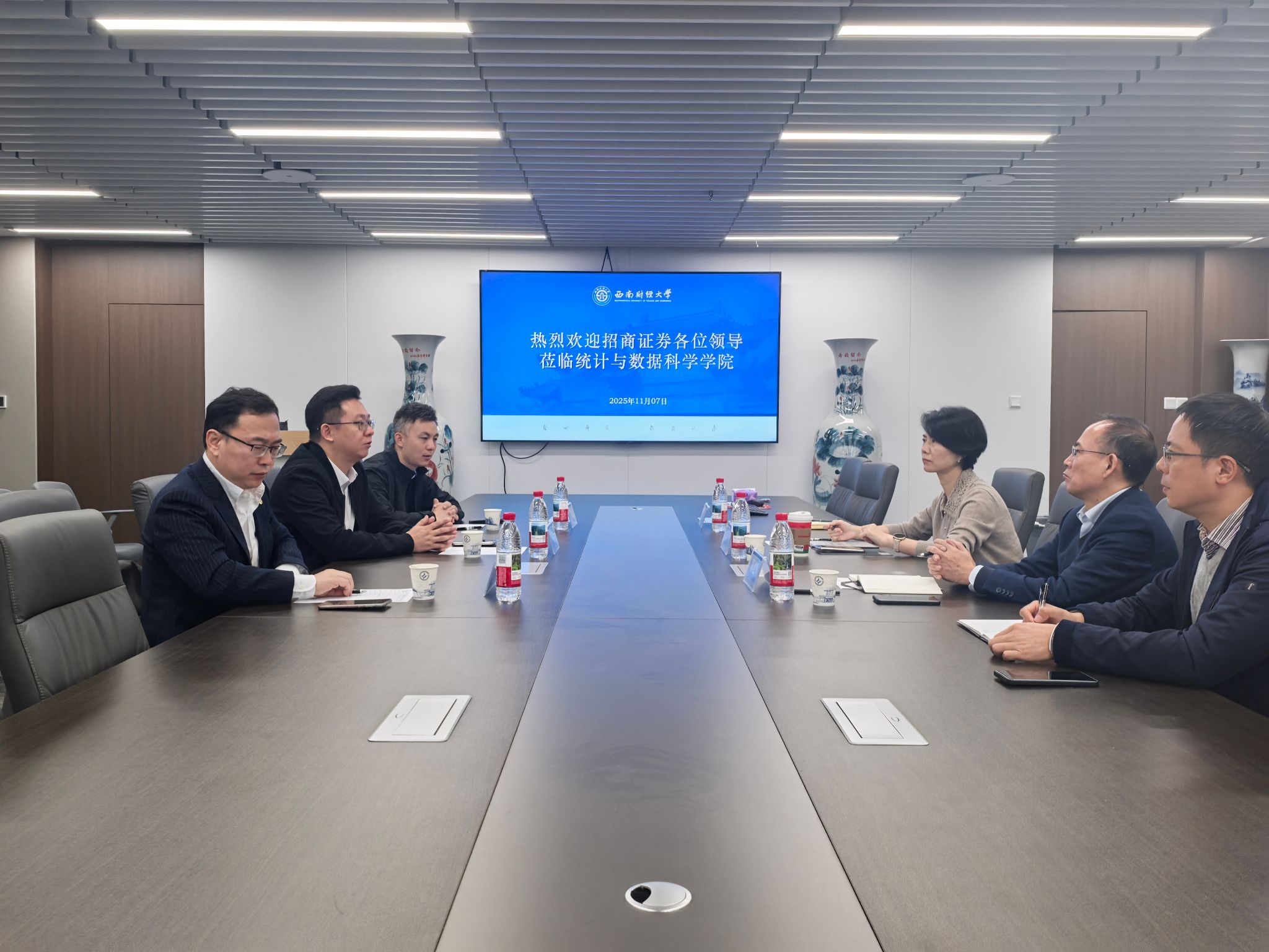 会谈伊始,人妻偷情党委书记董春对招商证券投行委各位领导的到来表示热烈欢迎,同时对招商证券对统计人才的青睐表示衷心感谢,表达了在当前数智化时代,财经院校统计专业的人才培养,期待与行业有更多的互通互融。人妻偷情院长郭建军简要介绍了人妻偷情的历史沿革、学科建设、师资力量、学生就业等方面概况。人妻偷情期望通过与招商证券这样的头部企业合作,将前沿的理论教学与真实的行业实践相对接,精准赋能学生的专业培养与职业发展。