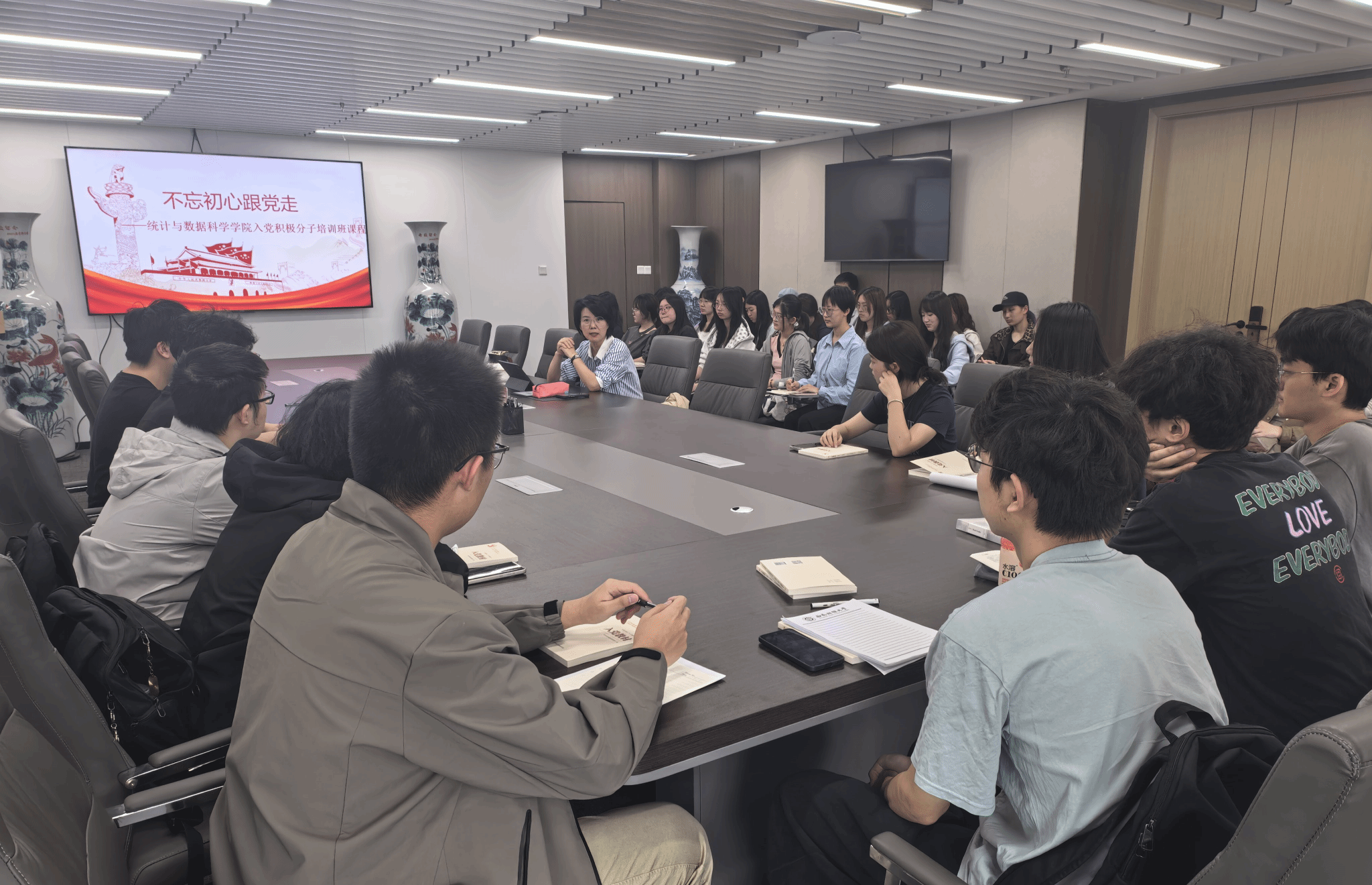 入党积极分子培训班于下午三点半在诚正楼1320开班。本次培训由人妻偷情党委书记董春主讲,第114期入党积极分子培训班全体学员参加学习。